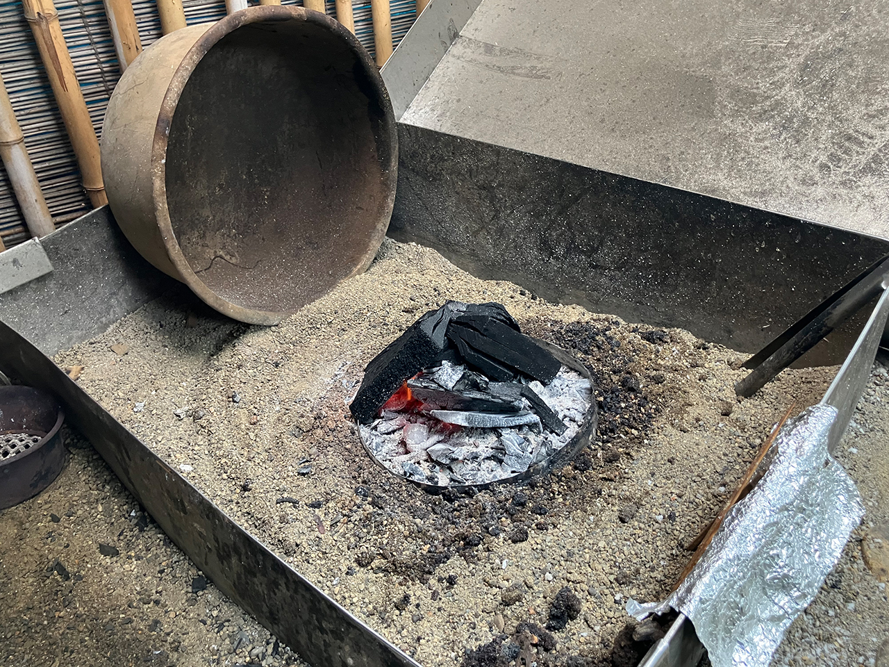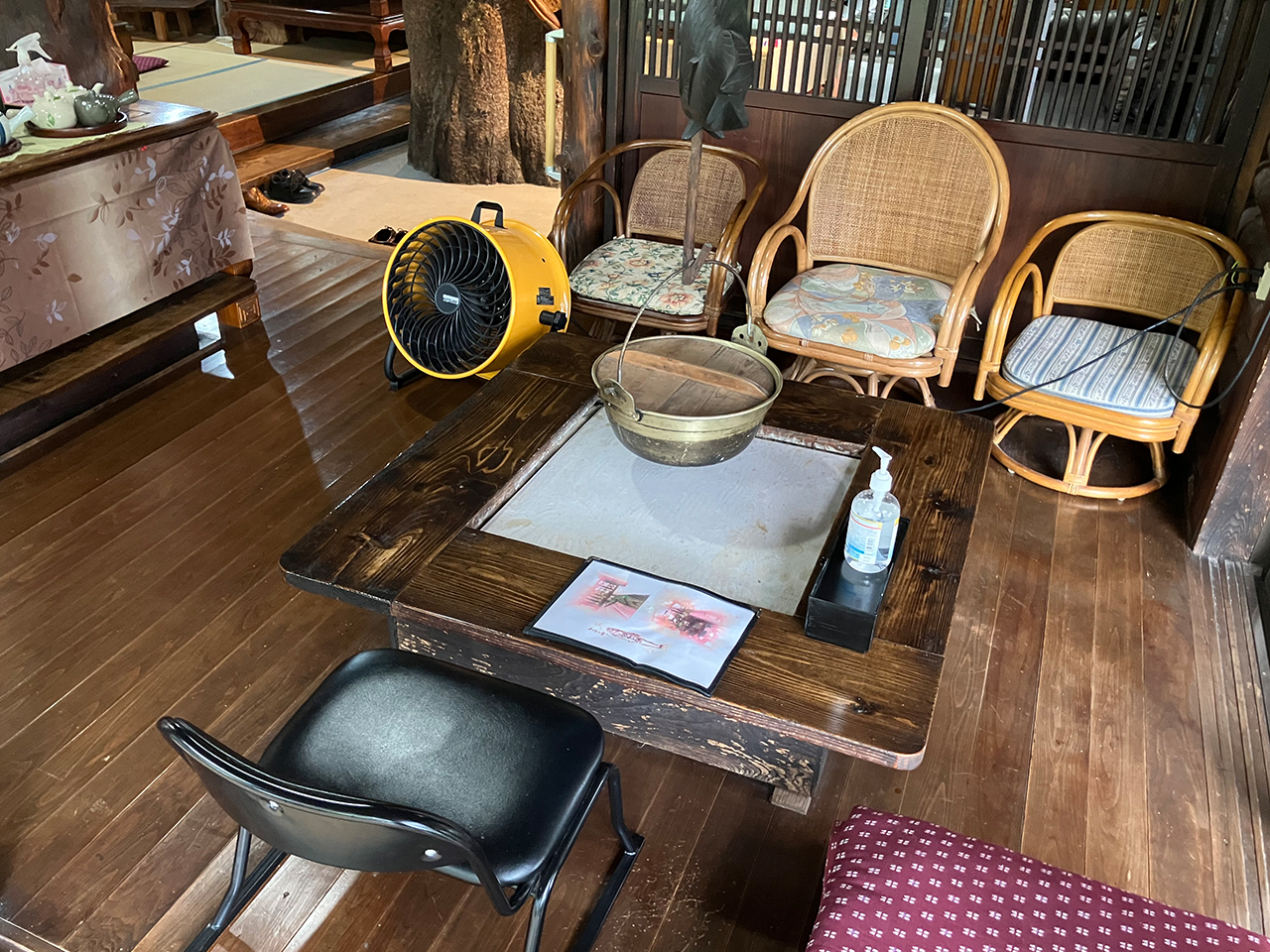お店の中に入ると、休憩スペースでしょうか、いろり風のテーブルがあってどこか懐かしい雰囲気。