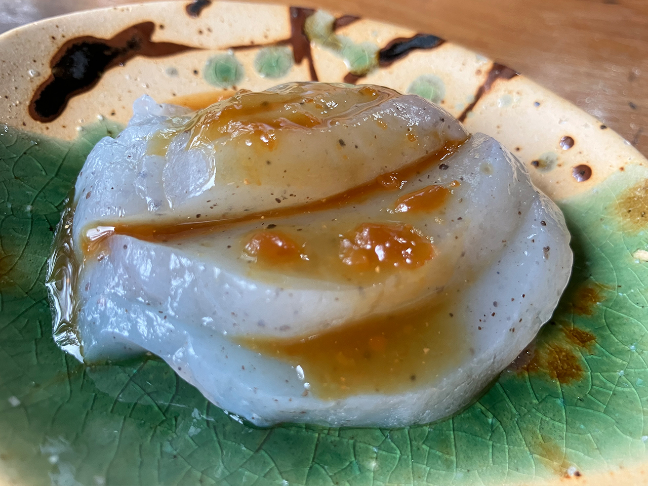 こんにゃくのお刺身は自家製味噌がかかっていてチュルンとした食感。とてもおいしいです。