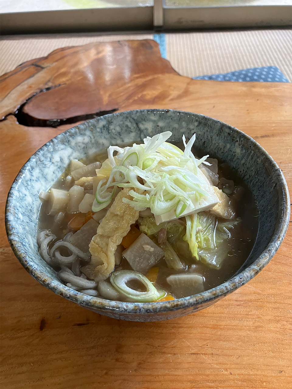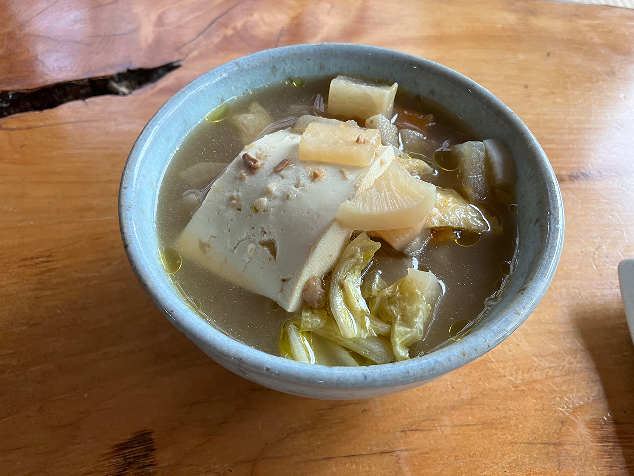 けんちん汁は先程のけんちんそば同様、優しい味です。大きな木綿豆腐に出汁の旨味が染みていておいしい!