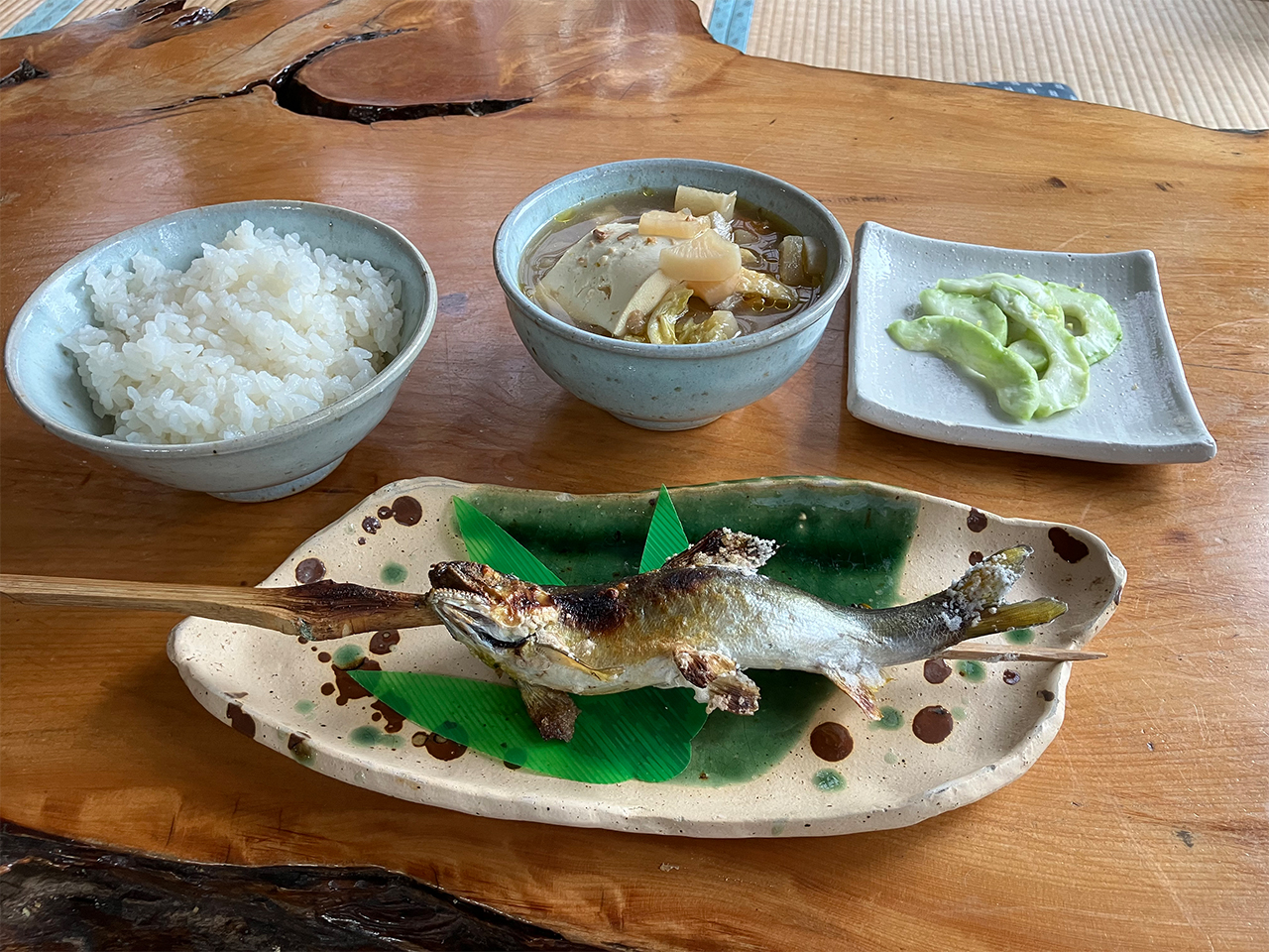 けんちんそばがとてもおいしかったので若あゆ定食を追加注文。