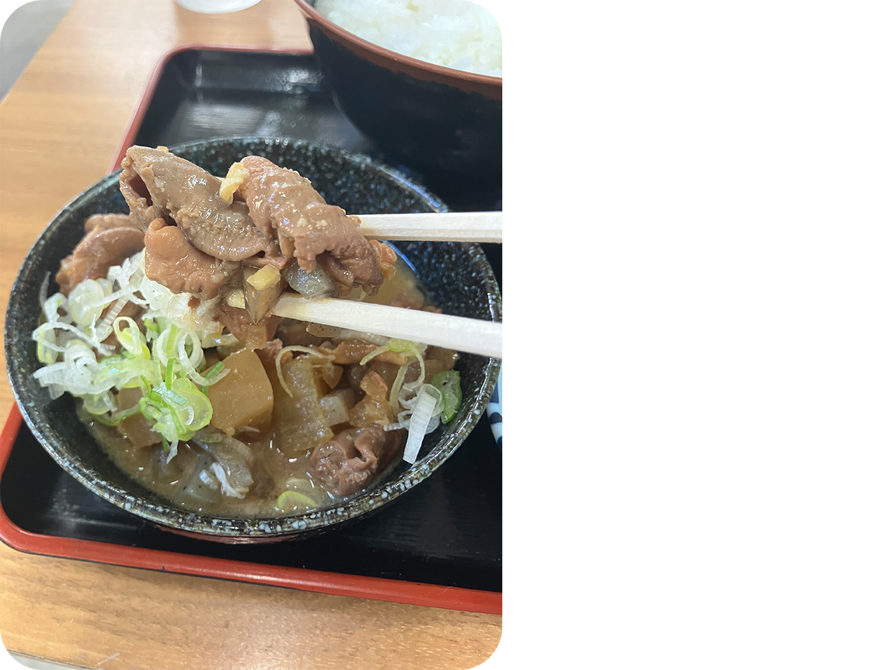 料理を頼むとあまり待たずにもつ煮定食が運ばれてきました。