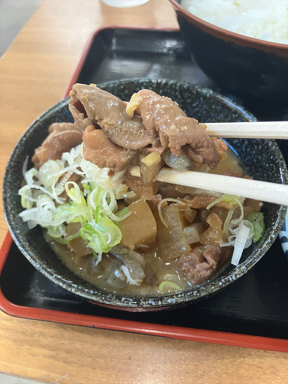 大きめのもつにしっかりと味噌ベースのたれが染み込んでいてごはんがとまりません。