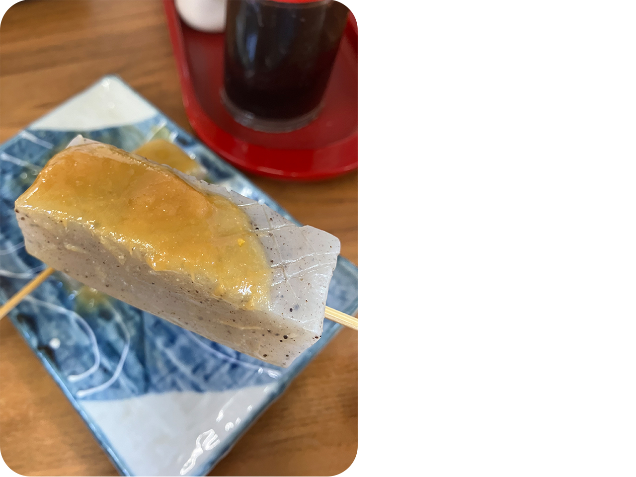 食べた瞬間ゆずの爽やかな香りが口いっぱいに広がり、甘だれの味噌が相まってプリプリのコンニャクと相性抜群!
